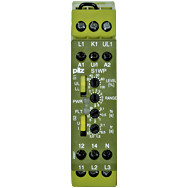 Wirkleistungsüberwachung, für 1- und 3-Phasennetze geeignet fürfrequenzgeregelte Motoren, 9 Messbereiche 0 - 1000 Hz, Messspannung 0 -415 V AC/DC, 1 Wechselkontakt, 1 Analogausgang 0 - 10 V DC oder 4 - 20mA, Breite = 22,5 mm, UB = 110 - 230 V AC/DC.