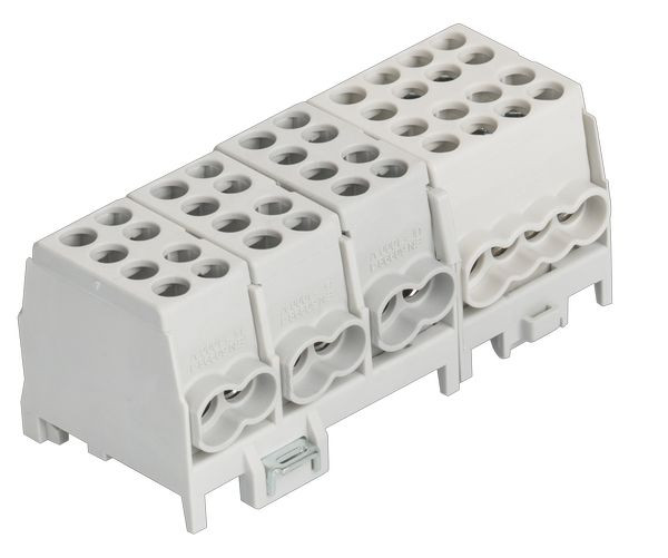 4 x grau / grey / gris, mehrpolig, Schnellbefestigung aus Stahlblech, Doppel-Schnellbefestigung bei 4- u. 5-pol., Minimodular kompatibel, VDE-zertifiziert, multipole, quick snap-on, galvanized steel, 2-fold locking for 4- and 5-pole, extendable with the mini modular range, VDE certified, multi polaire, attache rapide d‘acier galvanisé, 2 attaches rapide pour 4 et 5 pôle, compatible avec le système mini-modulaire, certifié par VDE
