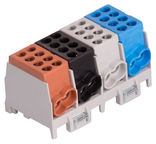 1 x braun / brown / brune, 1 x schwarz / black / noir, 1 x grau / grey / gris, 1 x blau / blue / bleu, mehrpolig, Schnellbefestigung aus Stahlblech, Doppel-Schnellbefestigung bei 4- u. 5-pol., Minimodular kompatibel, multipole, quick snap-on, galvanized steel, 2-fold locking for 4- and 5-pole, extendable with the mini modular range, multi polaire, attache rapide d‘acier galvanisé, 2 attaches rapide pour 4 et 5 pôle, compatible avec le système mini-modulaire,