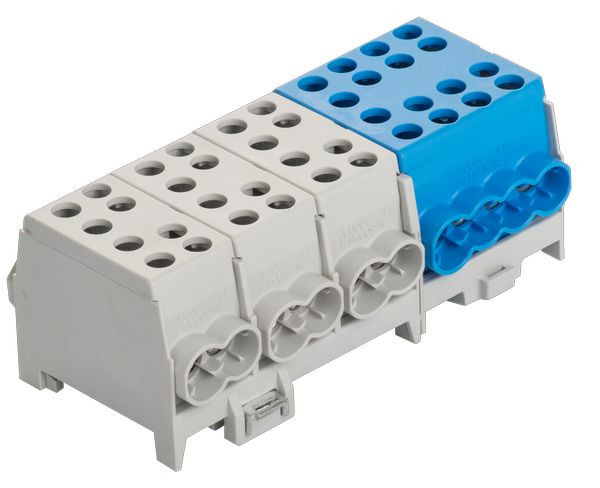 1 x braun / brown / brune, 1 x schwarz / black / noir, 1 x grau / grey / gris, 1 x blau / blue / bleu, mehrpolig, Schnellbefestigung aus Stahlblech, Doppel-Schnellbefestigung bei 4- u. 5-pol., Minimodular kompatibel, VDE-zertifiziert, multipole, quick snap-on, galvanized steel, 2-fold locking for 4- and 5-pole, extendable with the mini modular range, VDE certified, multi polaire, attache rapide d‘acier galvanisé, 2 attaches rapide pour 4 et 5 pôle, compatible avec le système mini-modulaire, certifié par VDE
