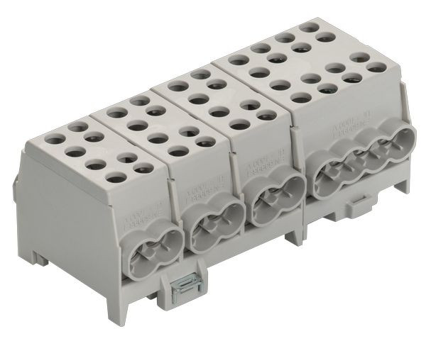 4 x grau / grey / gris, mehrpolig, Schnellbefestigung aus Stahlblech, Doppel-Schnellbefestigung bei 4- u. 5-pol., Minimodular kompatibel, VDE-zertifiziert, multipole, quick snap-on, galvanized steel, 2-fold locking for 4- and 5-pole, extendable with the mini modular range, VDE certified, multi polaire, attache rapide d‘acier galvanisé, 2 attaches rapide pour 4 et 5 pôle, compatible avec le système mini-modulaire, certifié par VDE,