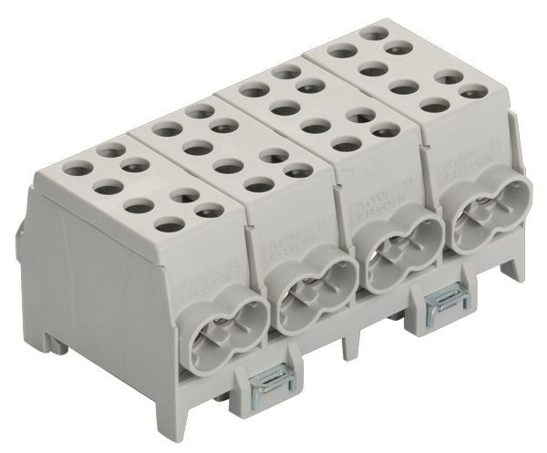 4 x grau / grey / gris, mehrpolig, Schnellbefestigung aus Stahlblech, Doppel-Schnellbefestigung bei 4- u. 5-pol., Minimodular kompatibel, VDE-zertifiziert, multipole, quick snap-on, galvanized steel, 2-fold locking for 4- and 5-pole, extendable with the mini modular range, VDE certified, multi polaire, attache rapide d‘acier galvanisé, 2 attaches rapide pour 4 et 5 pôle, compatible avec le système mini-modulaire, certifié par VDE,