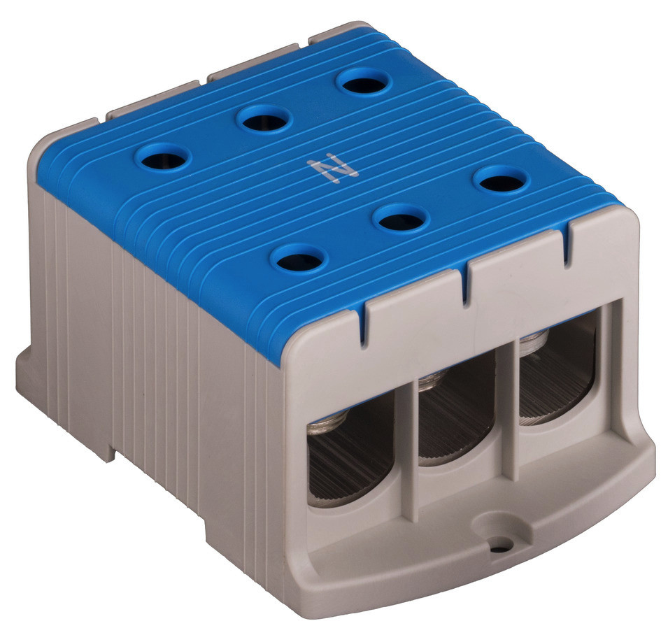 Montage auf 35 mm Tragschiene gem. EN 60715, Für Anwendungen mit Kupfer- und Aluminiumleitungen, Klemmkörper aus Alu, verzinnt, Al 380A, 35-240 mm²,Cu 425A, 35-240mm²