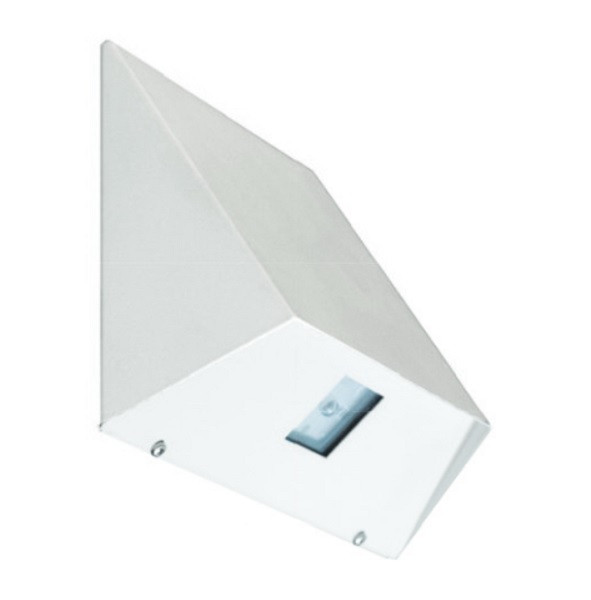 Sicherheitsleuchte TRIANGLE, Gehäuse aus Edelstahlbech in weiß lackiert, dreieckiges Design mit Lichtaustrittsfläche nach unten, High-Power-LED mit Lichtlenkung durch spezielle Linsen für asymmetrische Lichtverteilung (Beleuchtung von Rettungswegen mit 1 lx) oder für symmetrische Lichtverteilung (Beleuchtung von Flächen mit 0,5 lx), Wandanbau, 3 wechselbare Linsen, Betriebsdauer 1 - 3 - 8 Stunden, Lichtstärke von 40-271 Lumen, Batterie Lithium-Titanat, Batterielebensdauer: 10 Jahre, 2 x LTO 7,2 V / 0,5 Ah, Schaltung Dauer und Bereitschaft, 4,85 VA