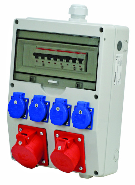 - Ausstattung (Ausgang) Klappdeckelsteckdosen: 1 x CEE 32 A, 400 V~ 1 x CEE 16 A, 400 V~ 4 x Steckdose 230 V~