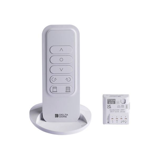 Das Pack Tyxia 631 ist Set zur Steuerung von Raffstores, Markisen oder Jalousien, bestehend aus einem Empfänger Tyxia 5731 und einer Fernbedienung Tyxia 1705 Der Funk-Empfänger Tyxia 5731 dient zur Steuerung eines Motors für Raffstoren, Markisen oder Jalousien und hat eine Spannungsversorgung von 230 V. Er lässt sich dank der sehr kompakten Größe einfach Installieren und kann bei Verwendung für Raffstoreantriebe sogar die Lamellenneigung steuern. In Verbindung mit einem Windsensor wählt der Empfänger, je nach Windstärke, automatisch die Stellung des Rollos. Die Tyxia 1705 ist eine Funk-Fernbedienung mit 1 Kanal zur Steuerung eines Raffstores oder einer Raffstoregruppe, bzw. einer Jalousie oder eine Jalousiegruppe. Steuern Sie mit der Funk-Fernbedienung zentral Komforteinrichtungen eines Raumes, bzw. des gesamten Wohnbereiches. Mit der Tyxia 1705 lassen sich 2 Zwischenstellungen (festgelegten Höhen) je Antrieb, bzw. Gruppe einfach programmieren. Die Ausrichtung der Lamellen der Raffstore lässt sich präzise steuern. Die individuelle Wahlfunktion ermöglicht die einzelne Konfiguration der Rollläden, ohne diese von der Stromversorgung zu trennen Mit Hilfe der Netzwerk-Mesh-Funktion steuern Sie auch entfernte Empfänger in mehreren Räumen oder Stockwerken. Eine LED-Anzeige bestätigt, dass die Empfänger (max.16) den gesendeten Befehl empfangen haben. Die Tyxia 1705 lässt sich an der Wand befestigen oder auf dem Sockel aufstellen.