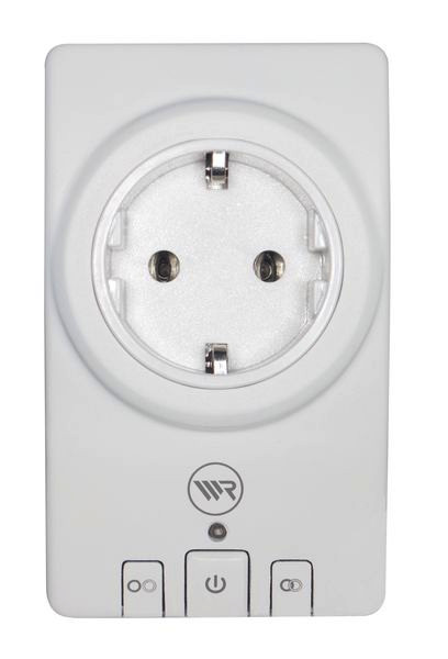 Der Funk-Zwischenstecker Schalten ist ein funkfähiger Zwischenstecker zum Schalten von elektrischen Verbrauchern. Mit ihm kann ein beliebiger Verbraucher bis max. 1300 W per Funk geschaltet werden. Der Funk-Zwischenstecker Schalten wird durch die Funk-Sender und -Zentralen bedient. Durch einen Taster am Gerät lässt sich das angeschlossene Gerät weiterhin manuell bedienen. In Verbindung mit z.B. dem HomePilot® sind umfangreiche Automatikfunktionen wie das Standard-/Wochen-/Tagesprogramm, die Zufallsfunktion und die Astrofunktion, mit der Geräte nach Morgen- und Abenddämmerung in Abhängigkeit von der PLZ gesteuert werden können, möglich. Der Funk-Zwischenstecker Schalten besitzt einen Geräte- und einen Lichtmodus. Er hat eine Versorgungsspannung von 230 V und ist der Schutzklasse II zugeordnet. Im Stand-by verbraucht er ca. 0,5 W. Die Sendefrequenz ist 434,5 MHz und die Sendeleistung beträgt max. 10 mW. Im Freifeld wird eine Reichweite von ca. 100 m, im Gebäude ca. 30 m (abhängig von der Bausubstanz) erreicht. Die Maße (ohne Stecker) sind 64x106x41 mm (BxHxT).