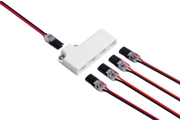 Vierfach-Verteiler für 2PIN-Zuleitungkabel zum professionellen Anschließen von vier LED Strips an einem Treiber. (Stecker FXZA3995 nicht enthalten)
