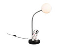 incl. 1x SMD, 1,5W · 1x 100lm, 2700K, Mit der Tischleuchte ARM holst du dir ein Stück Galaxie ins Wohnzimmer. Der stilisierte Leuchtenkopf in Mondoptik schwebt über einem filigran gearbeiteten Astronauten - als würde er gerade seinen ersten Schritt auf unbekanntem Terrain setzen. Die Komposition erinnert an große Pioniermomente der Raumfahrt und verleiht deinem Interieur eine Prise kosmischer Magie. Der sanfte Lichtschein macht ARM zur idealen Akzentleuchte - sei es auf dem Nachttisch, im Regal oder als Blickfang auf dem Schreibtisch. Gesteuert wird das Licht bequem über einen Schnurschalter, sodass du mit einem einfachen Klick den Orbit deiner Gedanken erleuchten kannst. Gefertigt aus robustem Polyresin in edlem Weiß und Schwarz, überzeugt die Leuchte nicht nur durch ihre kreative Form, sondern auch durch ihre hochwertige Haptik. Die matte Oberfläche verleiht der Leuchte Tiefe und unterstreicht das futuristische Design. Ein stilvoller Mix aus Kunstobjekt und funktionaler Lichtquelle - ideal für alle, die das Außergewöhnliche suchen.