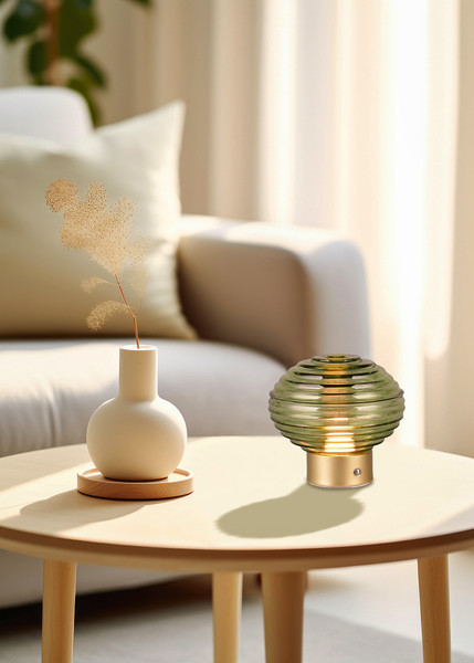 Akku LED Tischleuchte Messing grün