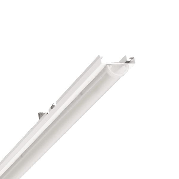 Geräteträger, aus verzinktem, profiliertem Stahlblech Oberfläche mit Polyesterharz beschichtet. Werkzeuglose Befestigung mit design-integrierten Druckverschlüssen gewährleisten einen Diebstahl- und Demontageschutz. LED-Einheit in Gehäuselänge für optisch durchlaufendes Lichtband. Diffusoroptik, Lichtverteilung direkt/indirekt diffus-strahlend mittels Diffusor geeist aus Kunststoff PC, Durchlaufende Lichtband-Optik.