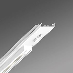Geräteträger-Einsatz mit integrierter Universal-Dreiphasenstromschiene mit Dali (nutzbare Länge 680 mm) aus verzinktem, profiliertem Stahlblech zur Kombination von Akzent- und Allgemeinbeleuchtung, Oberfläche mit Polyesterharzlack beschichtet, mit zwei Drehverschlüssen für das schnelle Einsetzen in die Tragschiene. Wärmebeständige Leitungen einschließlich festpositioniertem 7-poligen Schnellmontage-Steckerteil mit werkzeugloser Phasenvorwahl und Suchfinger. Geeignet für Leuchten mit 3-Ph.-Stromsch.-Adapter (ET) von Regiolux, Global Trac, Eutrac, Iguzzini, Ivela, Powergear, Reggiani, Targetti, Zumtobel und 5-Ph.Stromsch.-Adapter (DALI) von Regiolux, Global Trac.