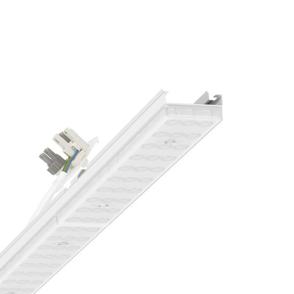 Geräteträger aus verzinktem, profiliertem Stahlblech, Oberfläche mit Polyesterharz beschichtet. Werkzeuglose Befestigung mit design-integrierten Druckverschlüssen gewährleisten einen Diebstahl- und Demontageschutz. In der Tragschiene variabel positionierbar. Lichtverteilung direkt/indirekt diffus-strahlend mittels Individual.Lens.Optic aus Kunststoff PMMA, die Einzellinsenoptik sorgt für eine hohe Montagefreundlichkeit und ist wartungsfreundlich durch leicht zu reinigende Oberfläche. Der Rythmus der 3-reihigen Einzellinsen-Anordnung ist innerhalb und Geräteträger übergreifend perfekt aufeinander abgestimmt und gewährleistet ein homogenes Erscheinungsbild im Objekt. Wärmebeständige Leitungen einschließlich Anschlussleitung 1m und Schnellmontage-Steckerteil mit werkzeugloser Phasenvorwahl und Suchfinger.