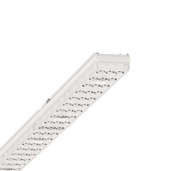 Geräteträger aus verzinktem, profiliertem Stahlblech mit Zinkauflage kombiniert mit Polyesterharzlack gewährleisten einen guten Korrosionschutz, Werkzeuglose Befestigung mit design-integrierten Druckverschlüssen gewährleisten einen Diebstahl- und Demontageschutz. Integrierte Stirnseiten aus Kunststoff mit Dichtlippen und eine umlaufend geschlossene Dichtung zur Tragschiene für Schutzart bis IP64. Gehäusefarbe verkehrsweiß RAL 9016. Lichtverteilung direkt extrem tiefstrahlend mittels Individual.Lens.Optic aus Kunststoff PMMA, mit Regalaufhellung, Die Einzellinsenoptik enthält eine transparente Dichtung, sorgt für eine hohe Montagefreundlichkeit und ist wartungsfreundlich durch leicht zu reinigende Oberfläche. Der Rhythmus der 3-reihigen Einzellinsen-Anordnung ist innerhalb und Geräteträger übergreifend perfekt aufeinander abgestimmt und gewährleistet ein homogenes Erscheinungsbild im Objekt. Geeignet für Bildschirmarbeitsplätze, rundumentblendet 65° < 3000 cd/qm nach aktueller Norm DIN-EN 12464-1. Wärmebeständige Leitungen einschließlich festpositioniertem 3-poligen Schnellmontage-Steckerteil mit werkzeugloser Phasenvorwahl und Suchfinger.