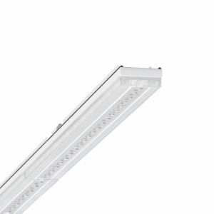 Geräteträger aus verzinktem, profiliertem Stahlblech mit Zinkauflage kombiniert mit Polyesterharzlack gewährleisten einen guten Korrosionschutz, Werkzeuglose Befestigung mit design-integrierten Druckverschlüssen gewährleisten einen Diebstahl- und Demontageschutz. Integrierte Stirnseiten aus Kunststoff mit Dichtlippen und eine umlaufend geschlossene Dichtung zur Tragschiene für Schutzart bis IP64. Gehäusefarbe verkehrsweiß RAL 9016. Lichtverteilung direkt breitstrahlend mittels Central.Line.Optic aus Kunststoff PMMA, die Linsenoptik enthält eine transparente Dichtung, sorgt für eine hohe Montagefreundlichkeit und ist wartungsfreundlich durch leicht zu reinigende Oberfläche. Die Dichte der 1-reihigen Linsen-Anordnung sorgt für ein Verschmelzen der Punkte zu einer Linie mit homogenem Erscheinungsbild im Objekt.