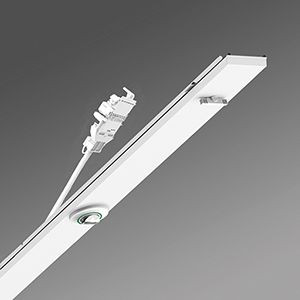 Geräteträger, aus verzinktem, profiliertem Stahlblech mit Zinkauflage kombiniert mit Polyesterharzlack gewährleisten einen guten Korrosionschutz, Werkzeuglose Befestigung mit integrierten Drehverschlüssen für das schnelle Einsetzen in die Tragschiene. In der Tragschiene variabel positionierbar. Gehäusefarbe verkehrsweiß RAL 9016. Lichtverteilung direkt extrem breitstrahlend mittels LED-Einzellinsenoptik. Elektrische Verbindung mittels Anschlussleitung 0,7 m zur variablen Geräteträgerpositionierung im Lichtband mit 5-poligen Schnellmontage-Steckerteil mit freier Phasenvorwahl. Sicherheitsleuchte für den Betrieb an Zentralbatterie 220VDC, optionaler Einbau von Adressbausteinen gegen Mehrpreis möglich.