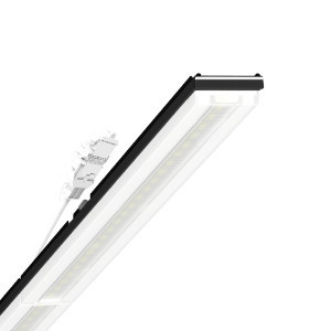 Geräteträger aus verzinktem, profiliertem Stahlblech mit Zinkauflage kombiniert mit Polyesterharzlack gewährleisten einen guten Korrosionschutz, Werkzeuglose Befestigung mit design-integrierten Druckverschlüssen gewährleisten einen Diebstahl- und Demontageschutz. Integrierte Stirnseiten aus Kunststoff mit Dichtlippen und eine umlaufend geschlossene Dichtung zur Tragschiene für Schutzart bis IP64. In der Tragschiene variabel positionierbar. Gehäusefarbe schwarz RAL 9005. Leistungsstufe: Economy Performance (EP) - Für kostensensible Projekte, hohe Effizienz und Lebensdauer, Lichtverteilung direkt/indirekt diffus-strahlend mittels Central.Line.Optic aus Kunststoff PMMA, die Linsenoptik enthält eine transparente Dichtung, sorgt für eine hohe Montagefreundlichkeit und ist wartungsfreundlich durch leicht zu reinigende Oberfläche. Die Dichte der 1-reihigen Linsen-Anordnung sorgt für ein Verschmelzen der Punkte zu einer Linie mit homogenem Erscheinungsbild im Objekt.