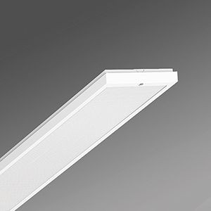 Stahlblechgehäuse pulverlackiert rechteckiger Querschnitt, integriertes Quicklock Schnell-Montage-Bügelsystem mit Fanghaken und Sicherungsseil zur einfachen und schnellen Montage, Gehäusefarbe silbergrau/weißaluminium RAL 9006. Mikroprismenscheibe in "Multilayer" Technik, Lichtverteilung direkt strahlend mittels Diffusor micro-prismatisch aus PMMA, Homogene Lichtverteilung. Geeignet für Bildschirmarbeitsplätze, rundumentblendet 65° < 3000 cd/qm nach aktueller Norm DIN-EN 12464-1.