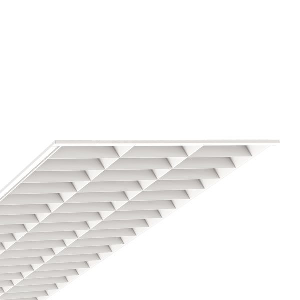 Stahlblechgehäuse mit gleichbreitem, umlaufendem Rand und 7 mm hohen Aufkantungen für verdeckt, symmetrische Schienenkonstruktionen und ausgeschnittene Decken, Gehäusefarbe verkehrsweiß RAL 9016. Lichtverteilung direkt breitstrahlend mittels Raster weiß aus Stahlblech, mit stabilen, glatten Querlamellen, weiß lackiert ähnlich RAL 9016, mit V-Reflektor, einseitig abklappbar, ballwurfsicher. Rasterbefestigung über federnde, ballwurfsichere Verschlüsse, die nur mit Werkzeug zu öffnen sind. Elektrischer Anschluss über 5-polige Anschlussklemme in Steckkontakt-Technik. LED-Einheiten einzeln oder als Gruppe dimmbar.
