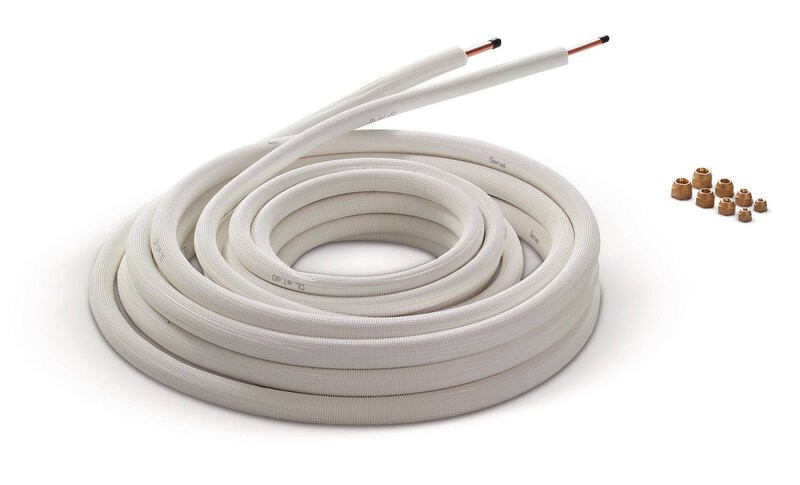 Die maximal zulässige Leitungslänge (siehe Technische Daten des Außenteils) ist zu beachten. Die Länge der Kältemittelleitung richtet sich nach den örtlichen Gegebenheiten. Die Kältemittelleitungen werden auf die bestellte Länge vorkonfektioniert (gebördelt und mit Bördelmuttern versehen) und die Außenteile mit entsprechend benötigter Kältemittelzusatzmenge vorgefüllt.