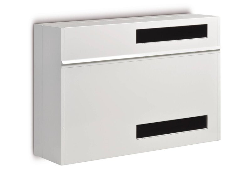 Formstabiles Stahlblechgehäuse, verzinkt und grundiert. Innen und außen mit Pulverlackierung versehen. Gehäuse innen schall- und wärmedämmend isoliert. Lufteintritt an der Vorderseite über leicht zu entnehmenden Luftfilter, Luft Ein- und Austritt an der Vorderseite.