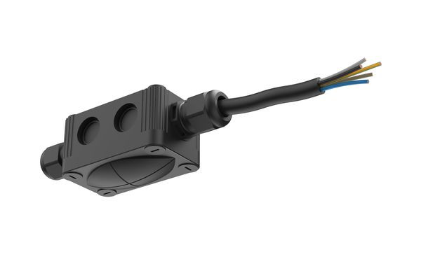 Bluetooth Low Energy (2,4–2,483 GHz )/ DALI Hybridbox Mini zum Anschluss von bis zu 4 dimmbaren DALI-Leuchten/Adressen Device Typ 6 (DT6) oder DALI Tunable White Device Typ 8 (DT8). Gehäuse aus Kunststoff, schwarz, ähnlich RAL 9005. Schutzart IP66