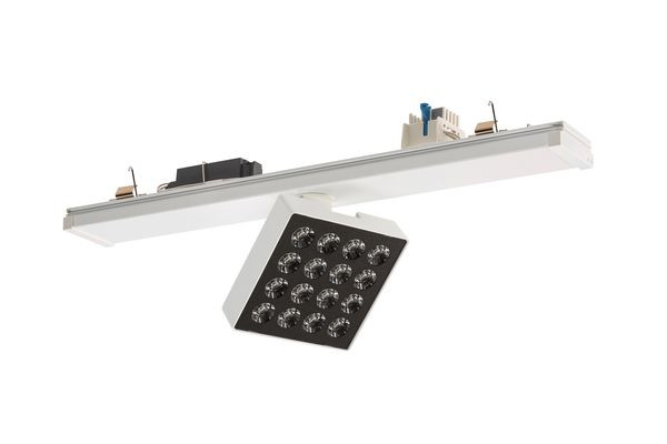 Strahlermodul KARO der RIDI LINIA-Produktfamilie. Lichtlenkung durch Linse aus PMMA klar, Ausstrahlungscharakteristik symmetrisch, Medium, Lichtaustritt direkt. Leuchtmittel LED-M eingebaut, Austausch durch Fachkraft möglich. Die Leuchte generiert einen Bemessungslichtstrom von 3900 lm in Lichtfarbe 840, Lichtstrom einstellbar: Nein. Die hohe LED-Lebensdauer von bis zu 50.000 h ermöglicht einen langen Einsatz bei gleichbleibender Beleuchtungsgüte. Hohe Lichtqualität durch eine Farborttoleranz von < 3 SDCM. Aluminium, verkehrsweiß, ähnlich RAL 9016, Schutzart IP20, Zulässige Umgebungstemperatur -20 - 25 °C. Montage an Tragschiene VLTM … über Federstahlklammern. Mit elektronischem Betriebsgerät On/Off. Austausch durch Fachkraft möglich. Nennspannung 220 - 240 V AC/DC 50 - 60 Hz.