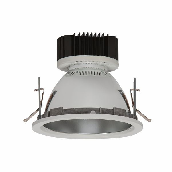 Downlight der EDLR-Produktfamilie. Lichtlenkung durch Reflektor, Ausstrahlungscharakteristik symmetrisch, breitstrahlend, Lichtaustritt direkt. Leuchtmittel LED-M eingebaut, Austausch durch Fachkraft möglich. Die Leuchte generiert einen Bemessungslichtstrom von 2610 lm in Lichtfarbe 8TW, Lichtstrom einstellbar: stufenlos. Die hohe LED-Lebensdauer ermöglicht einen langen Einsatz bei gleichbleibender Beleuchtungsgüte. Hohe Lichtqualität durch eine Farborttoleranz von < 3 SDCM. Gehäuse aus Aluminium, verkehrsweiß, ähnlich RAL 9016, Schutzart IP20. Abdeckung aus PC klar. Zusätzlich zu den Standardbefestigungsklammern für Klemmdicken von 0 bis 25 mm, sind als Zubehör spezielle Befestigungssätze wie Paneeleinbausätze, Verstärkungsplatten, Betoneingießtöpfe, Einputzringe, Schräg- und Halbeinbausätze lieferbar. Mit elektronischem Betriebsgerät DALI