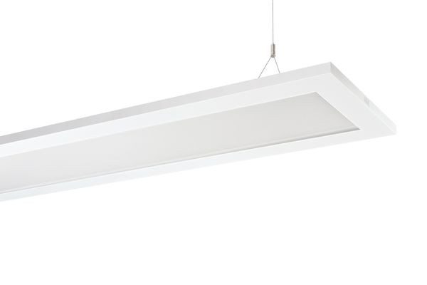 Pendelleuchte der F-EDGE2-Produktfamilie. Lichtlenkung durch Abdeckung mikroprismatisch, Ausstrahlungscharakteristik symmetrisch, breitstrahlend, Lichtaustritt direkt. Leuchtmittel LED-M eingebaut, Austausch durch Fachkraft möglich. Die Leuchte generiert einen Bemessungslichtstrom von 4100 lm in Lichtfarbe 840, Lichtstrom einstellbar: Nein. Die hohe LED-Lebensdauer ermöglicht einen langen Einsatz bei gleichbleibender Beleuchtungsgüte. Hohe Lichtqualität durch eine Farborttoleranz von < 3 SDCM. Gehäuse aus Aluminium, weiß, Schutzart IP20. Abdeckung aus PMMA strukturiert. Die Leuchten sind für die Pendelmontage mit Seilpendel, Länge 1,5 m ZSPT2Z 330 (siehe Zubehör) geeignet. Netzzuleitung, Länge 1,5 m mit transparentem Mantel (separat zu bestellen). Für die Herstellung von F-EDGE2-Konstrukten sind Verbindungsstücke gerade, in L-, in T- und in Kreuzform lieferbar (siehe Zubehör). Leuchte auch als Anbauvariante möglich mit entsprechendem Zubehörsatz (siehe Zubehör). Mit elektronischem Betriebsgerät On/Off. Austausch durch Fachkraft möglich. Nennspannung 220 - 240 V AC/DC 50 - 60 Hz.