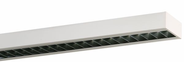 Deckenleuchte der ABRB-Produktfamilie. Lichtlenkung durch Raster, Ausstrahlungscharakteristik symmetrisch, extrem breitstrahlend, Lichtaustritt direkt. Leuchtmittel R-TUBE eingebaut, Austausch durch Endkunde möglich. Die Leuchte generiert einen Bemessungslichtstrom von 3970 lm in Lichtfarbe 840, Lichtstrom einstellbar: Nein. Die hohe LED-Lebensdauer ermöglicht einen langen Einsatz bei gleichbleibender Beleuchtungsgüte. Hohe Lichtqualität durch eine Farborttoleranz von < 3 SDCM. Gehäuse aus Stahl, verkehrsweiß, ähnlich RAL 9016, Schutzart IP20. Einzel- und Lichtbandmontage über einfaches werkzeugloses Schnellmontagesystem für erhebliche Montagezeitverkürzung. Befestigungsklammern ergeben einen Abstand von 7,5 mm von Decke zu Leuchte. Elektrischer Anschluss von außen auf der Leuchtenoberseite. Leuchtenoberseite zurückversetzt zur Aufnahme der Anschlussleitung und Durchgangsverdrahtung. Lichtbandmontage mit Leuchtenverbinder ABRBV aus UV-beständigem Kunststoff, separat zu bestellen (siehe Zubehör). Mit elektronischem Betriebsgerät On/Off. Austausch durch Fachkraft möglich. Nennspannung 220 - 240 V AC/DC 50 - 60 Hz.