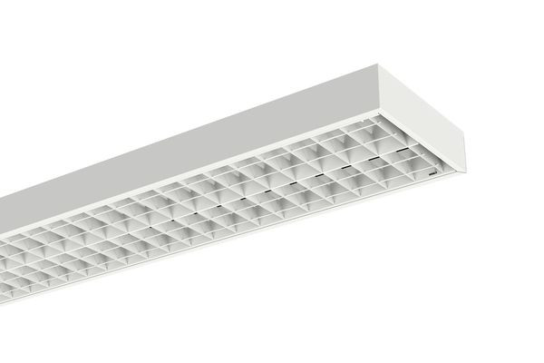 Deckenleuchte der ABR-BWS-Produktfamilie. Lichtlenkung durch Raster, Ausstrahlungscharakteristik symmetrisch, extrem breitstrahlend, Lichtaustritt direkt. Leuchtmittel LED-M eingebaut, Austausch durch Fachkraft möglich. Die Leuchte generiert einen Bemessungslichtstrom von 14230 lm in Lichtfarbe 840, Lichtstrom einstellbar: in Stufen. Die hohe LED-Lebensdauer ermöglicht einen langen Einsatz bei gleichbleibender Beleuchtungsgüte. Hohe Lichtqualität durch eine Farborttoleranz von < 3 SDCM. Lichtstrom in Stufen einstellbar von 9640 - 16460 lm. Gehäuse aus Stahl, verkehrsweiß, ähnlich RAL 9016, Schutzart IP20. Mit elektronischem Betriebsgerät xFlex. Austausch durch Fachkraft möglich. Nennspannung 220 - 240 V AC/DC 50 - 60 Hz.