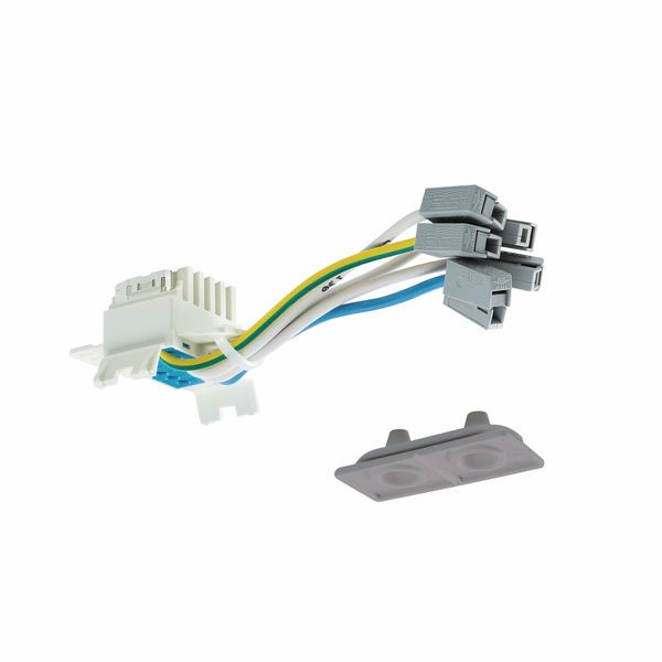 Kurzbeschreibung Netzeinspeisteil 5-polig,feindrähtige Zuleitung, inkl. Abdeckkappe silbern