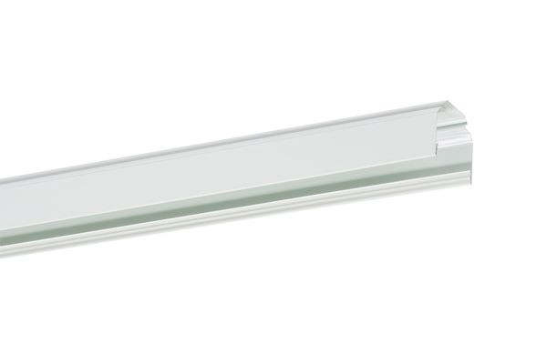Tragschiene der RIDI LINIA-Produktfamilie. Die Tragschienen können mit den Befestigungs- und Zubehörteilen montiert bzw. komplettiert werden (Zubehör separat zu bestellen). Für die Herstellung von Lichtbandfiguren sind Knotenpunkte lieferbar. Die Tragschiene ist mit Geräteträgern oder Blindabdeckungen vollständig zu verschließen.