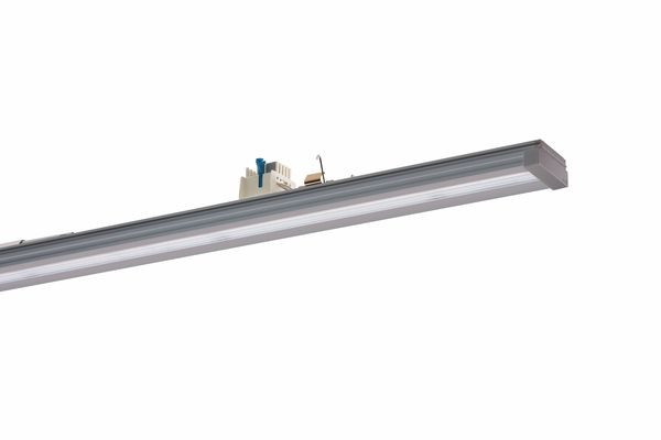 Geräteträger VLGFP der RIDI LINIA-Produktfamilie. Lichtlenkung durch Abdeckung längsprismatisch, Ausstrahlungscharakteristik doppelt asymmetrisch, doppelt schrägstrahlend, Lichtaustritt direkt. Leuchtmittel LED-M eingebaut, Austausch durch Fachkraft möglich. Die Leuchte generiert einen Bemessungslichtstrom von 7540 lm in Lichtfarbe 840. Die hohe LED-Lebensdauer ermöglicht einen langen Einsatz bei gleichbleibender Beleuchtungsgüte. Hohe Lichtqualität durch eine Farborttoleranz von < 3 SDCM. Gehäuse aus Aluminium, silber, ähnlich RAL 9006, Schutzart IP54. Einfaches Einclipsen zur elektrischen Kontaktierung und mechanischen Befestigung im systemgebundenem LINIA Tragschienensystem. Mit elektronischem Betriebsgerät On/Off. Austausch durch Fachkraft möglich. Nennspannung 220 - 240 V AC/DC 50 - 60 Hz.