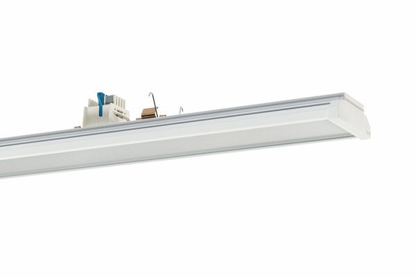 Geräteträger VLGFS der RIDI LINIA-Produktfamilie. Lichtlenkung durch Abdeckung mikroprismatisch, Ausstrahlungscharakteristik symmetrisch, breitstrahlend, Lichtaustritt direkt. Leuchtmittel LED-M eingebaut, Austausch durch Fachkraft möglich. Die Leuchte generiert einen Bemessungslichtstrom von 4970 lm in Lichtfarbe 865. Die hohe LED-Lebensdauer ermöglicht einen langen Einsatz bei gleichbleibender Beleuchtungsgüte. Hohe Lichtqualität durch eine Farborttoleranz von < 3 SDCM. Gehäuse aus Aluminium, verkehrsweiß, ähnlich RAL 9016, Schutzart IP54. Einfaches Einclipsen zur elektrischen Kontaktierung und mechanischen Befestigung im systemgebundenem LINIA Tragschienensystem. Mit elektronischem Betriebsgerät On/Off. Austausch durch Fachkraft möglich. Nennspannung 220 - 240 V AC/DC 50 - 60 Hz.