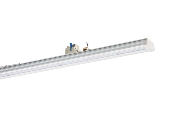 Geräteträger VLGFP der RIDI LINIA-Produktfamilie. Lichtlenkung durch Abdeckung längsprismatisch, Ausstrahlungscharakteristik symmetrisch, engstrahlend, Lichtaustritt direkt. Leuchtmittel LED-M eingebaut, Austausch durch Fachkraft möglich. Die Leuchte generiert einen Bemessungslichtstrom von 10500 lm in Lichtfarbe 865. Die hohe LED-Lebensdauer ermöglicht einen langen Einsatz bei gleichbleibender Beleuchtungsgüte. Hohe Lichtqualität durch eine Farborttoleranz von < 3 SDCM. Lichtstrom in Stufen einstellbar von 4800 - 10500 lm. Gehäuse aus Stahl, verkehrsweiß, ähnlich RAL 9016, Schutzart IP54. Einfaches Einclipsen zur elektrischen Kontaktierung und mechanischen Befestigung im systemgebundenem LINIA Tragschienensystem. Mit elektronischem Betriebsgerät xFlex. Austausch durch Fachkraft möglich. Nennspannung 220 - 240 V AC/DC 50 - 60 Hz.