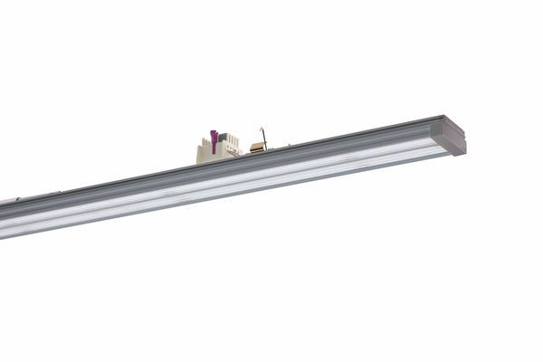 Geräteträger VLGFP der RIDI LINIA-Produktfamilie. Lichtlenkung durch Abdeckung längsprismatisch, Ausstrahlungscharakteristik asymmetrisch, schrägstrahlend, Lichtaustritt direkt. Leuchtmittel LED-M eingebaut, Austausch durch Fachkraft möglich. Die Leuchte generiert einen Bemessungslichtstrom von 13870 lm in Lichtfarbe 850. Die hohe LED-Lebensdauer ermöglicht einen langen Einsatz bei gleichbleibender Beleuchtungsgüte. Hohe Lichtqualität durch eine Farborttoleranz von < 3 SDCM. Gehäuse aus Aluminium, silber, ähnlich RAL 9006, Schutzart IP54. Einfaches Einclipsen zur elektrischen Kontaktierung und mechanischen Befestigung im systemgebundenem LINIA Tragschienensystem. Mit elektronischem Betriebsgerät DALI-2. Austausch durch Fachkraft möglich. Nennspannung 220 - 240 V AC/DC 50 - 60 Hz.