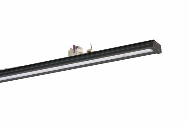Geräteträger VLGFP der RIDI LINIA-Produktfamilie. Lichtlenkung durch Abdeckung längsprismatisch, Ausstrahlungscharakteristik asymmetrisch, schrägstrahlend, Lichtaustritt direkt. Leuchtmittel LED-M eingebaut, Austausch durch Fachkraft möglich. Die Leuchte generiert einen Bemessungslichtstrom von 4850 lm in Lichtfarbe 865. Die hohe LED-Lebensdauer ermöglicht einen langen Einsatz bei gleichbleibender Beleuchtungsgüte. Hohe Lichtqualität durch eine Farborttoleranz von < 3 SDCM. Gehäuse aus Aluminium, schwarz, ähnlich RAL 9005, Schutzart IP54. Einfaches Einclipsen zur elektrischen Kontaktierung und mechanischen Befestigung im systemgebundenem LINIA Tragschienensystem. Mit elektronischem Betriebsgerät DALI-2. Austausch durch Fachkraft möglich. Nennspannung 220 - 240 V AC/DC 50 - 60 Hz.