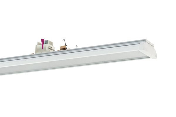 Geräteträger VLGFS der RIDI LINIA-Produktfamilie. Lichtlenkung durch Abdeckung mikroprismatisch, Ausstrahlungscharakteristik symmetrisch, breitstrahlend, Lichtaustritt direkt. Leuchtmittel LED-M eingebaut, Austausch durch Fachkraft möglich. Die Leuchte generiert einen Bemessungslichtstrom von 15110 lm in Lichtfarbe 850. Die hohe LED-Lebensdauer ermöglicht einen langen Einsatz bei gleichbleibender Beleuchtungsgüte. Hohe Lichtqualität durch eine Farborttoleranz von < 3 SDCM. Gehäuse aus Aluminium, verkehrsweiß, ähnlich RAL 9016, Schutzart IP54. Einfaches Einclipsen zur elektrischen Kontaktierung und mechanischen Befestigung im systemgebundenem LINIA Tragschienensystem. Mit elektronischem Betriebsgerät DALI-2. Austausch durch Fachkraft möglich. Nennspannung 220 - 240 V AC/DC 50 - 60 Hz.