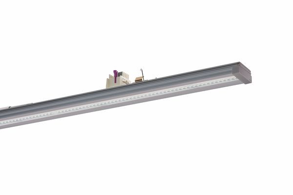 Geräteträger VLGFL der RIDI LINIA-Produktfamilie. Lichtlenkung durch Linse, Ausstrahlungscharakteristik symmetrisch, breitstrahlend, Lichtaustritt direkt. Leuchtmittel LED-M eingebaut, Austausch durch Fachkraft möglich. Die Leuchte generiert einen Bemessungslichtstrom von 5030 lm in Lichtfarbe 830. Die hohe LED-Lebensdauer ermöglicht einen langen Einsatz bei gleichbleibender Beleuchtungsgüte. Hohe Lichtqualität durch eine Farborttoleranz von < 3 SDCM. Gehäuse aus Aluminium, silber, ähnlich RAL 9006, Schutzart IP54. Einfaches Einclipsen zur elektrischen Kontaktierung und mechanischen Befestigung im systemgebundenem LINIA Tragschienensystem. Mit elektronischem Betriebsgerät DALI-2. Austausch durch Fachkraft möglich. Nennspannung 220 - 240 V AC/DC 50 - 60 Hz.