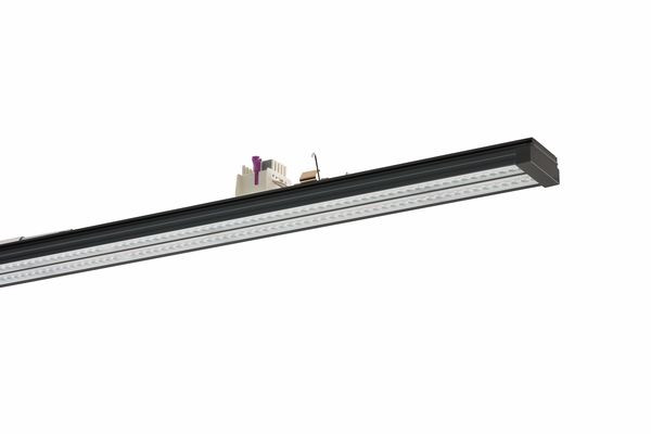 Geräteträger VLGFL der RIDI LINIA-Produktfamilie. Lichtlenkung durch Linse, Ausstrahlungscharakteristik symmetrisch, extrem tiefstrahlend, Lichtaustritt direkt. Leuchtmittel LED-M eingebaut, Austausch durch Fachkraft möglich. Die Leuchte generiert einen Bemessungslichtstrom von 9450 lm in Lichtfarbe 830. Die hohe LED-Lebensdauer ermöglicht einen langen Einsatz bei gleichbleibender Beleuchtungsgüte. Hohe Lichtqualität durch eine Farborttoleranz von < 3 SDCM. Gehäuse aus Aluminium, schwarz, ähnlich RAL 9005, Schutzart IP54. Einfaches Einclipsen zur elektrischen Kontaktierung und mechanischen Befestigung im systemgebundenem LINIA Tragschienensystem. Mit elektronischem Betriebsgerät DALI-2. Austausch durch Fachkraft möglich. Nennspannung 220 - 240 V AC/DC 50 - 60 Hz.