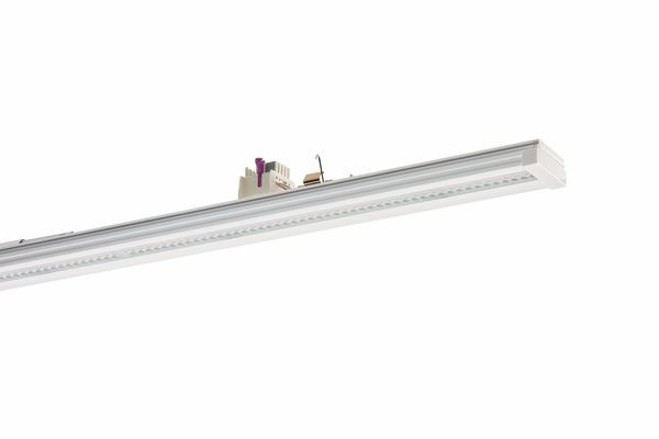 Geräteträger VLGFL der RIDI LINIA-Produktfamilie. Lichtlenkung durch Linse, Ausstrahlungscharakteristik symmetrisch, breitstrahlend, Lichtaustritt direkt. Leuchtmittel LED-M eingebaut, Austausch durch Fachkraft möglich. Die Leuchte generiert einen Bemessungslichtstrom von 10810 lm in Lichtfarbe 840. Die hohe LED-Lebensdauer ermöglicht einen langen Einsatz bei gleichbleibender Beleuchtungsgüte. Hohe Lichtqualität durch eine Farborttoleranz von < 3 SDCM. Gehäuse aus Stahl, verkehrsweiß, ähnlich RAL 9016, Schutzart IP54. Einfaches Einclipsen zur elektrischen Kontaktierung und mechanischen Befestigung im systemgebundenem LINIA Tragschienensystem. Mit elektronischem Betriebsgerät DALI-2. Austausch durch Fachkraft möglich. Nennspannung 220 - 240 V AC/DC 50 - 60 Hz.