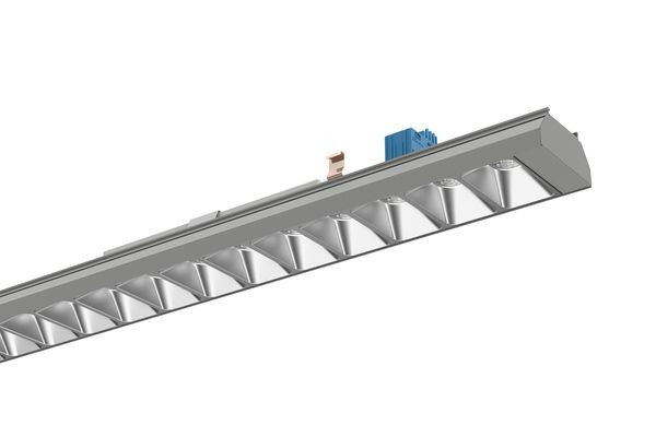 Geräteträger VL2P-ML der RIDI LINIA EVO-Produktfamilie. Lichtlenkung durch Linse aus PMMA klar, Ausstrahlungscharakteristik symmetrisch, breitstrahlend, Lichtaustritt direkt. Leuchtmittel LED-M eingebaut, Austausch durch Fachkraft möglich. Die Leuchte generiert einen Bemessungslichtstrom von 8240 lm in Lichtfarbe 840. Die hohe LED-Lebensdauer von bis zu 100.000 h ermöglicht einen langen Einsatz bei gleichbleibender Beleuchtungsgüte. Hohe Lichtqualität durch eine Farborttoleranz von < 3 SDCM. Lichtstrom in Stufen einstellbar von 5590 - 9540 lm. Aluminium, silber, ähnlich RAL 9006, Schutzart IP20, Zulässige Umgebungstemperatur -25 - 40 °C. Einfaches Einclipsen zur elektrischen Kontaktierung und mechanischen Befestigung im systemgebundenem LINIA EVO Tragschienensystem. Mit elektronischem Betriebsgerät xFlex. Austausch durch Fachkraft möglich. Nennspannung 220 - 240 V AC/DC 50 - 60 Hz.