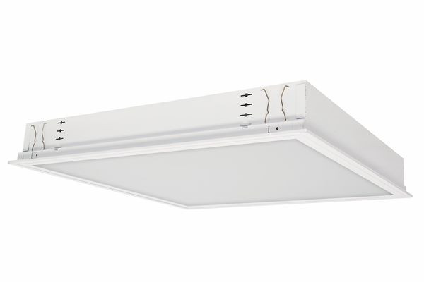 LED-Einbauleuchte Einzelleuchte für Deckenmodul 625. Stabiles Leuchtengehäuse aus Stahlblech, weiß pulverbeschichtet, Farbe ähnlich RAL9016. Lichtlenker mit Federbügeln im Leuchtengehäuse gehalten, beidseitig abklappbar und automatisch mit dem Schutzleiter verbunden. LED-Module als Flächenplatine ausgebildet. Mid-Power LEDs für gleichmäßige Ausleuchtung und maximale Effizienz. Gesamtlichtstrom der LED-Module 5200 lm, Farbwiedergabeindex Ra>80, Farbtemperatur 4000 Kelvin, andere Farbtemperaturen auf Anfrage möglich. LED-Treiber in Leuchtengehäuse eingebaut. Betrieb in Schutzkleinspannung kleiner 60 Volt (SELV-konform). Geeignet für Gleichspannungsbetrieb und Einsatz in Notbeleuchtungsanlagen. Elektronischer Konverter für LED, 230 Volt, 0/50–60 Hz und innenliegender Anschlussklemme.