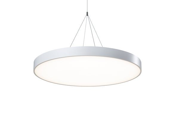 Pendelleuchte der STORA-Produktfamilie. Lichtlenkung durch Abdeckung opal, Ausstrahlungscharakteristik symmetrisch, extrem breitstrahlend, Lichtaustritt direkt. Leuchtmittel LED-M eingebaut, Austausch durch Fachkraft möglich. Die Leuchte generiert einen Bemessungslichtstrom von 3830 lm in Lichtfarbe 830, Lichtstrom einstellbar: Nein. Die hohe LED-Lebensdauer ermöglicht einen langen Einsatz bei gleichbleibender Beleuchtungsgüte. Hohe Lichtqualität durch eine Farborttoleranz von < 3 SDCM. Gehäuse aus Stahl, weiß, Schutzart IP20. Abdeckung aus PMMA opal. Montage: Abgehängte Montage durch 2-Punktbefestigung Seilpendel Trapez Mit elektronischem Betriebsgerät On/Off. Austausch durch Fachkraft möglich. Nennspannung 230 - 240 V AC/DC 50 - 60 Hz.