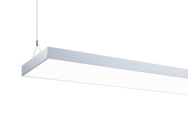 Pendelleuchte der STORA-Produktfamilie. Lichtlenkung durch Abdeckung opal, Ausstrahlungscharakteristik symmetrisch, extrem breitstrahlend, Lichtaustritt direkt. Leuchtmittel LED-M eingebaut, Austausch durch Fachkraft möglich. Die Leuchte generiert einen Bemessungslichtstrom von 3720 lm in Lichtfarbe 840, Lichtstrom einstellbar: stufenlos. Die hohe LED-Lebensdauer ermöglicht einen langen Einsatz bei gleichbleibender Beleuchtungsgüte. Hohe Lichtqualität durch eine Farborttoleranz von < 3 SDCM. Gehäuse aus Stahl, weiß, Schutzart IP20. Abdeckung aus PMMA opal. Montage: Abgehängte Montage durch 2-Punktbefestigung Seilpendel Trapez Mit elektronischem Betriebsgerät DALI-2. Austausch durch Fachkraft möglich. Nennspannung 220 - 240 V AC/DC 50 - 60 Hz.