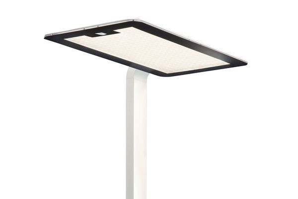 Stehleuchte der DOME-Produktfamilie. Lichtlenkung durch Abdeckung mikroprismatisch, Ausstrahlungscharakteristik symmetrisch, extrem breitstrahlend, Lichtaustritt direkt/indirekt. Leuchtmittel LED-M eingebaut, Austausch durch Fachkraft möglich. Die Leuchte generiert einen Bemessungslichtstrom von 11880 lm in Lichtfarbe 840, Lichtstrom einstellbar: stufenlos. Die hohe LED-Lebensdauer ermöglicht einen langen Einsatz bei gleichbleibender Beleuchtungsgüte. Hohe Lichtqualität durch eine Farborttoleranz von < 3 SDCM. Gehäuse aus Aluminium, verkehrsweiß, ähnlich RAL 9016, Schutzart IP20. Abdeckung aus PMMA strukturiert. Mit elektronischem Betriebsgerät DALI-2. Austausch durch Fachkraft möglich. Nennspannung 220 - 240 V AC 50 - 60 Hz.