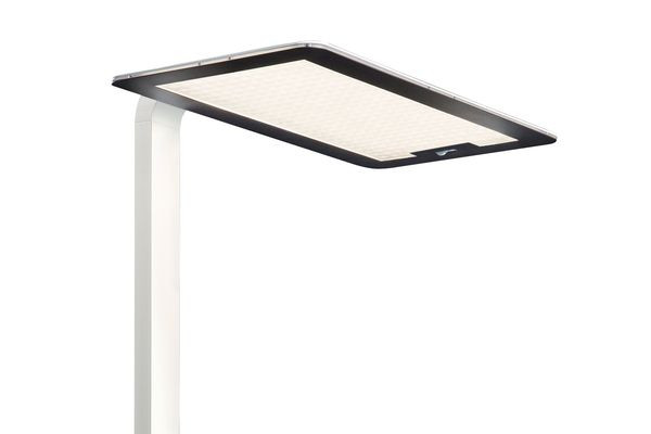 Stehleuchte der DOME-Produktfamilie. Lichtlenkung durch Abdeckung mikroprismatisch, Ausstrahlungscharakteristik symmetrisch, extrem breitstrahlend, Lichtaustritt direkt/indirekt. Leuchtmittel LED-M eingebaut, Austausch durch Fachkraft möglich. Die Leuchte generiert einen Bemessungslichtstrom von 11880 lm in Lichtfarbe 840, Lichtstrom einstellbar: stufenlos. Die hohe LED-Lebensdauer ermöglicht einen langen Einsatz bei gleichbleibender Beleuchtungsgüte. Hohe Lichtqualität durch eine Farborttoleranz von < 3 SDCM. Gehäuse aus Aluminium, verkehrsweiß, ähnlich RAL 9016, Schutzart IP20. Abdeckung aus PMMA strukturiert. Mit elektronischem Betriebsgerät DALI-2. Austausch durch Fachkraft möglich. Nennspannung 220 - 240 V AC 50 - 60 Hz.