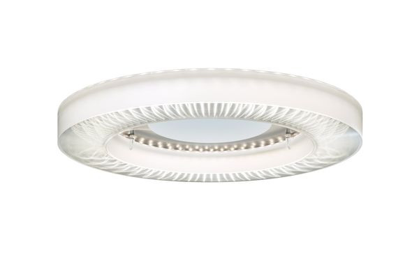 Deckenleuchte der IRIS-Produktfamilie. Lichtlenkung durch Abdeckung radialprismatisch, Ausstrahlungscharakteristik symmetrisch, breitstrahlend, Lichtaustritt direkt. Leuchtmittel LED-M eingebaut, Austausch durch Fachkraft möglich. Die Leuchte generiert einen Bemessungslichtstrom von 5330 lm in Lichtfarbe 840, Lichtstrom einstellbar: stufenlos. Die hohe LED-Lebensdauer ermöglicht einen langen Einsatz bei gleichbleibender Beleuchtungsgüte. Hohe Lichtqualität durch eine Farborttoleranz von . Gehäuse aus Kunststoff, transparent, Schutzart IP20. Mit elektronischem Betriebsgerät DALI-2. Austausch durch Fachkraft möglich. Nennspannung 220 - 240 V AC/DC 50 - 60 Hz.