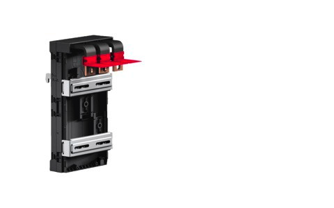 RiLineX CB-Geräteadapter (3-polig, max. 400 A) für 60 mm Sammelschienensysteme. Die Gerätebreite beträgt 140 mm. Die "Universal"-Ausführung mit Schiebemuttern bietet höchste Flexibilität bei der Schaltermontage. Der Adapter verfügt über eine werkzeuglose Aufrastmontage. Der Leitungsabgang kann individuellen Erfordernissen durch einfachen Umbau des Abgangs unten oder oben angepasst werden.